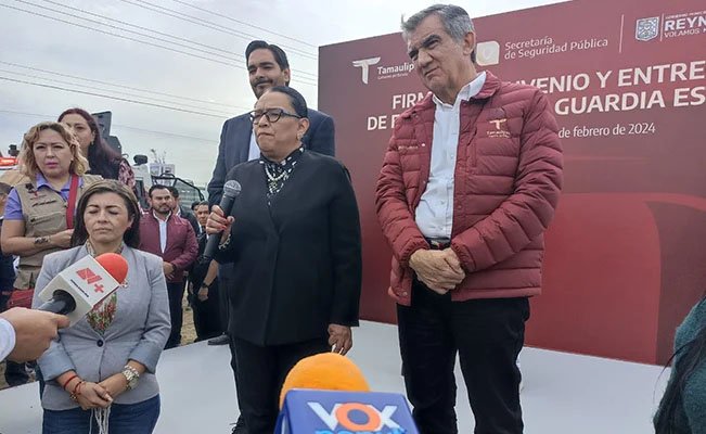 La estrategia de seguridad en Tamaulipas no cambia, los delitos han descendido. La violencia en México tiene muchas causas, pero una de las principales es el gran número de armas de fuego procedentes de Estados Unidos, aseguró la secretaria de Seguridad y Protección Ciudadana, Rosa Icela Rodríguez Velázquez, durante la visita que realizó a Reynosa para acompañar al gobernador Américo Villarreal Anaya en la Feria de Paz.